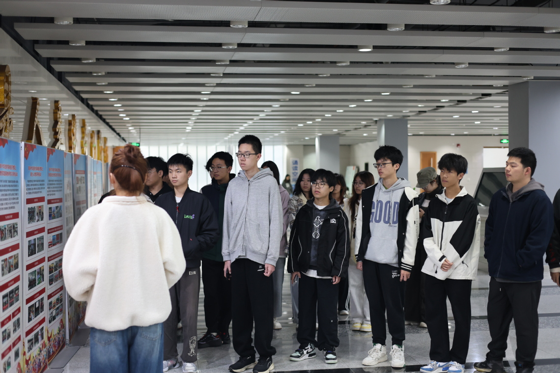 活动现场,基地讲解员以“铸牢中华民族共同体意识” 为主线,结合详实的文字资料、生动的图片案例与珍贵的实物展品,向新生们系统介绍了 “同心共育石榴红” 教育实践基地的建设背景、发展历程与丰硕成果。展厅内,十八块主题展板依次排开,全方位、多角度展现了学校在培育民族团结进步方面的扎实举措与辉煌成就。