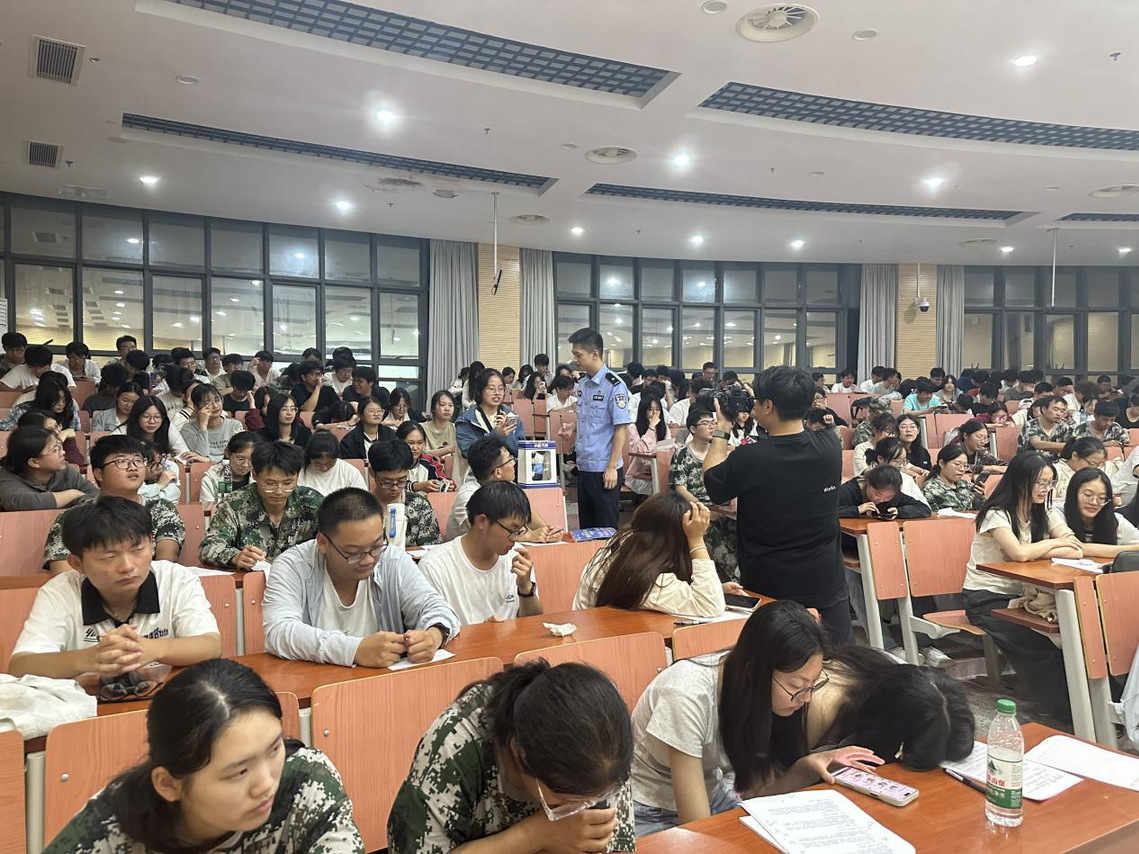 为切实增强学生反诈防骗意识能力,有效遏制电信网络诈骗,9月24日晚,我院“一站式”学生社区成功举办“开学反诈第一课”专题讲座。本次活动邀请盐城经济技术开发区公安局于利之警官主讲,2025级200余名新生参与。