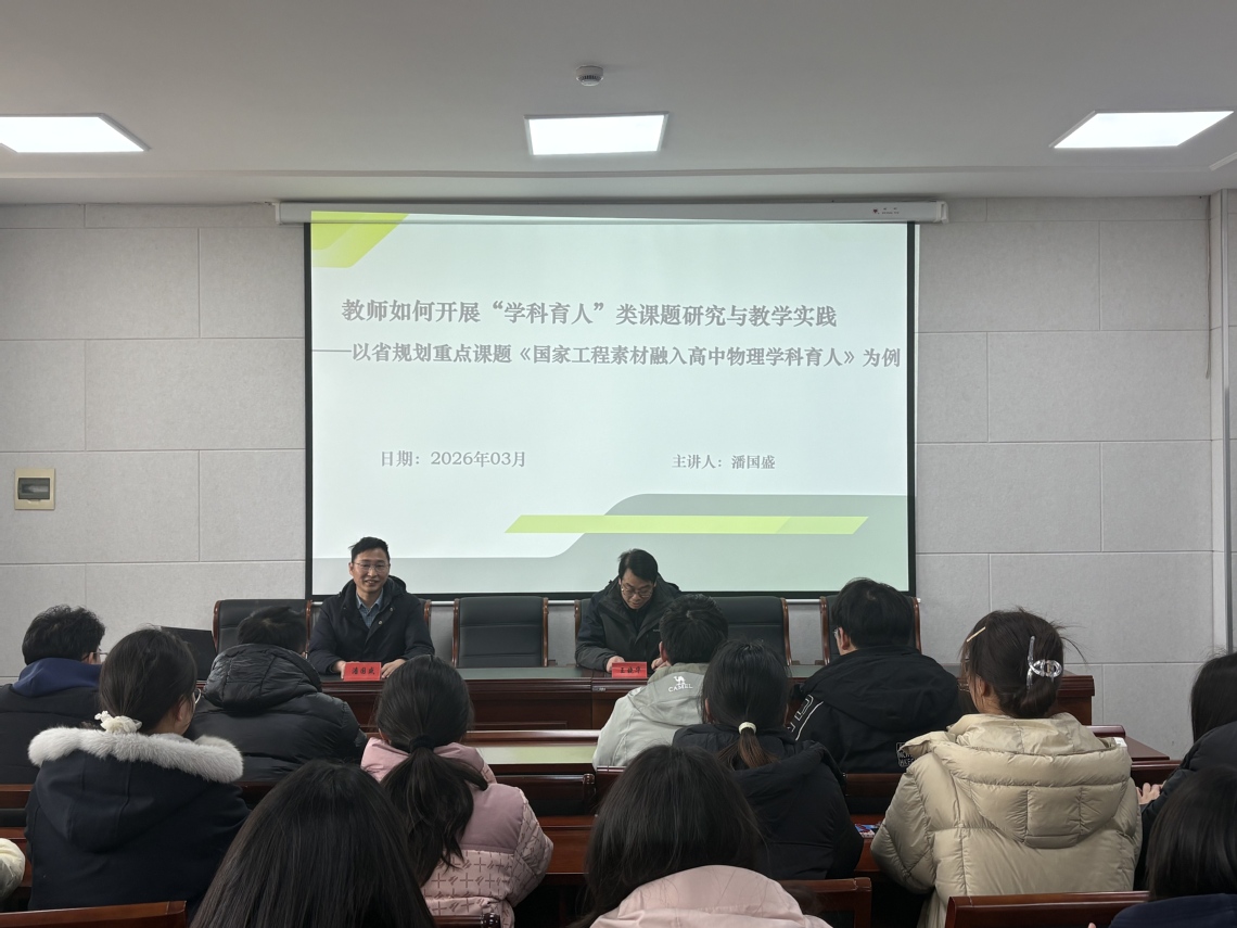 3月11日下午,我院特邀盐城市亭湖高级中学副校长、盐城市高中物理学科带头人潘国盛,江苏省教学名师、盐城市高中物理学科中心组成员董芳芳,为学院师范生作专题讲座。