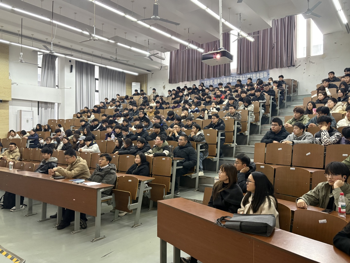 张志海结合行业发展与工作实际,从三个方面为学子们作精准指导。一是认清行业形势,把握发展主动。他表示,当前就业市场竞争加剧,行业对人才能力要求持续提升,考研是增强核心竞争力、掌握人生发展主动权的关键举措。二是凝聚护航合力,筑牢备考支撑。他介绍了学院历年考研工作的扎实基础,明确学院将联动各块力量,为同学们提供全周期考研指导与帮扶,全力护航同学们冲刺优质院校。三是坚守奋进初心,勇攀青春高峰。他勉励同学们坚定信心、脚踏实地,把握黄金备考期,以实干实绩实现人生理想。