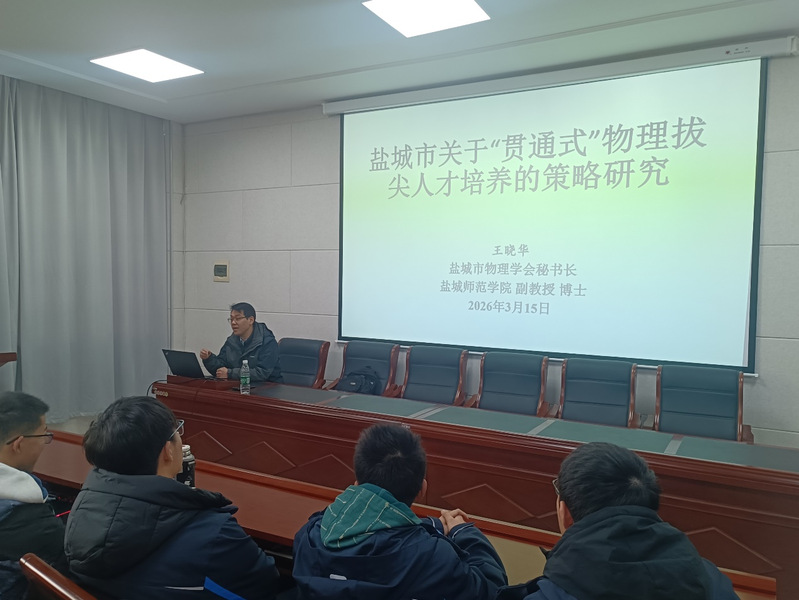 随后,我院王晓华博士为创新班同学作《盐城市关于“贯通式”物理拔尖人才培养的策略研究》专题讲座。讲座从江苏高考录取现状出发,结合国家基础学科拔尖创新人才选拔与培养机制,系统梳理了创新班学生的升学路径;同时深入分析了大学物理与中学物理在培养模式上的差异与衔接,勉励同学们敢于质疑、善于思考,在探究中构建新的认知体系。他还介绍了中学生物理实验竞赛的命题范围与竞赛规则,鼓励同学们把握时间优势,保持进取心态,扎实学习竞赛课程,努力在竞争中脱颖而出,实现进入理想高校的目标。