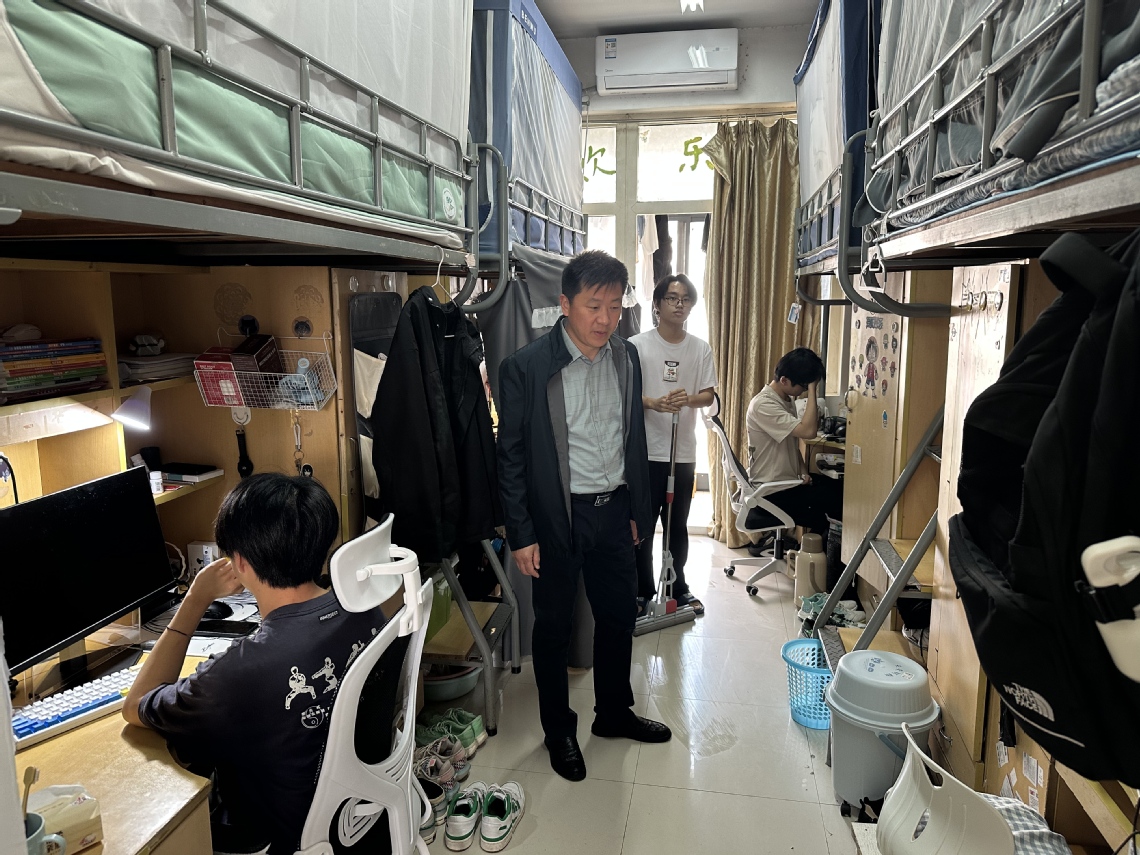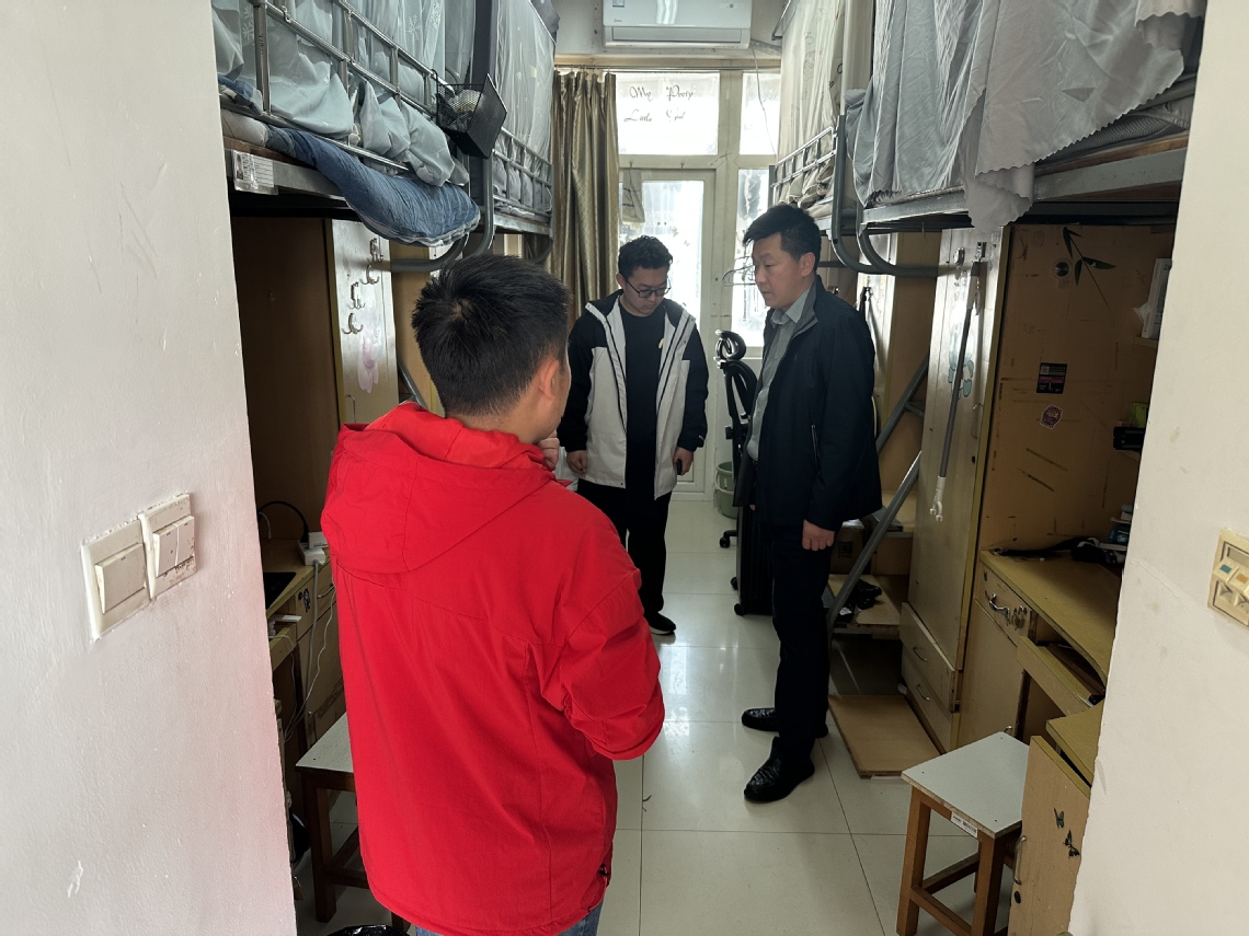 学院党委书记刘洋带领辅导员、班主任深入学生宿舍,重点检查违规使用大功率电器、使用明火、宿舍内吸烟、堵塞消防通道、损坏消防设施等问题。检查过程中,刘洋与同学们深入交流,详细了解同学们的生活习惯,反复叮嘱同学们要严格遵守宿舍管理规定,提高安全防范意识,共同守护宿舍安全底线。他强调建立安全隐患台账,明确整改责任人,现场督促整改,确保安全隐患早发现、早整改、早防范。